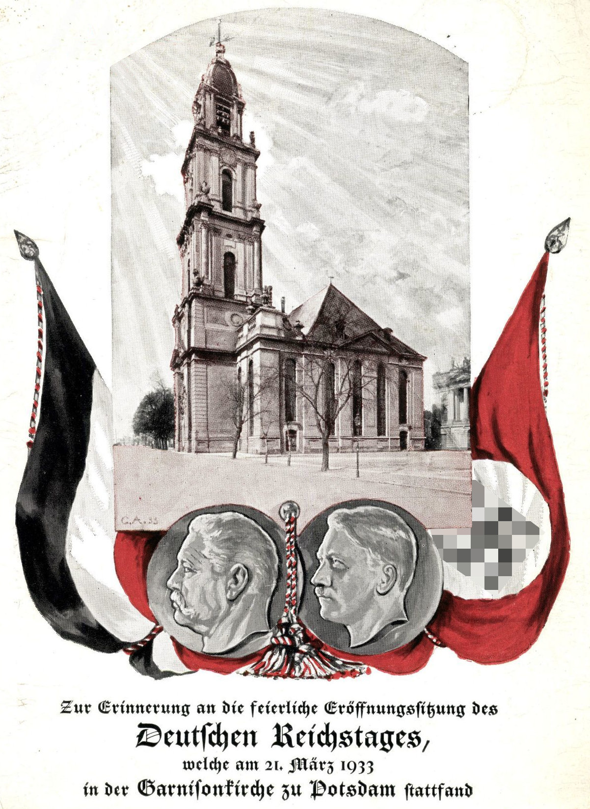 Die bewegte Geschichte der Garnisonkirche wurde durch die Ereignisse des 20. Jahrhunderts weiter geprägt. Am 21. März 1933 wurde in der Garnisonkirche in Potsdam der sogenannte erste Reichstag nach Machtübernahme der Nationalsozialisten eröffnet. Dieser Tag ging als „Tag von Potsdam“ in die Geschichte ein. Vor der Garnisonkirche verneigte sich Reichskanzler Adolf Hitler vor Reichspräsident Paul von Hindenburg. Der Handschlag dieser beiden Protagonisten sollte von den Nationalsozialisten als Symbol für den Bund zwischen dem „neuen“ und dem „alten“ Deutschland medienwirksam in Szene gesetzt werden.